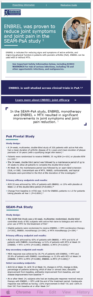 Yes, I can roll up my sleeves and do the the ‘nuts and bolt’s stuff, too, including writing, annotating, and shepherding through MLR review for pieces like this data-heavy HCP emails on ENBREL for the treatment of psoriatic arthritis (PsA).